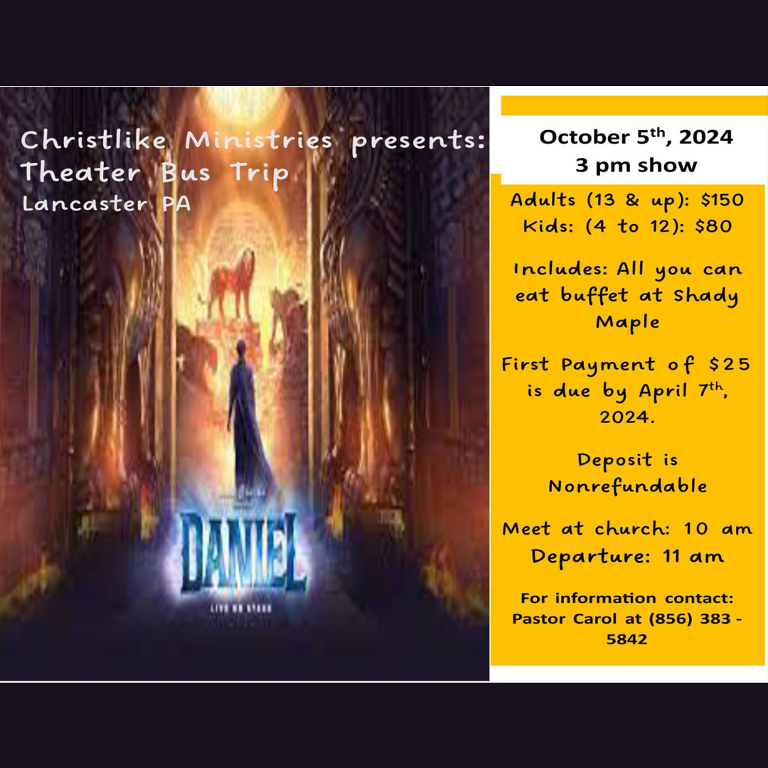 Adults (13 & Up) $150 Kids ( 4 to 12 ) $80 Includes: All you can eat buffet as Shady Maple First payment of $25 is due by April 7, 2024 Deposit is Nonrefundable Meet at Church: 10:00 AM Departures: … Read More